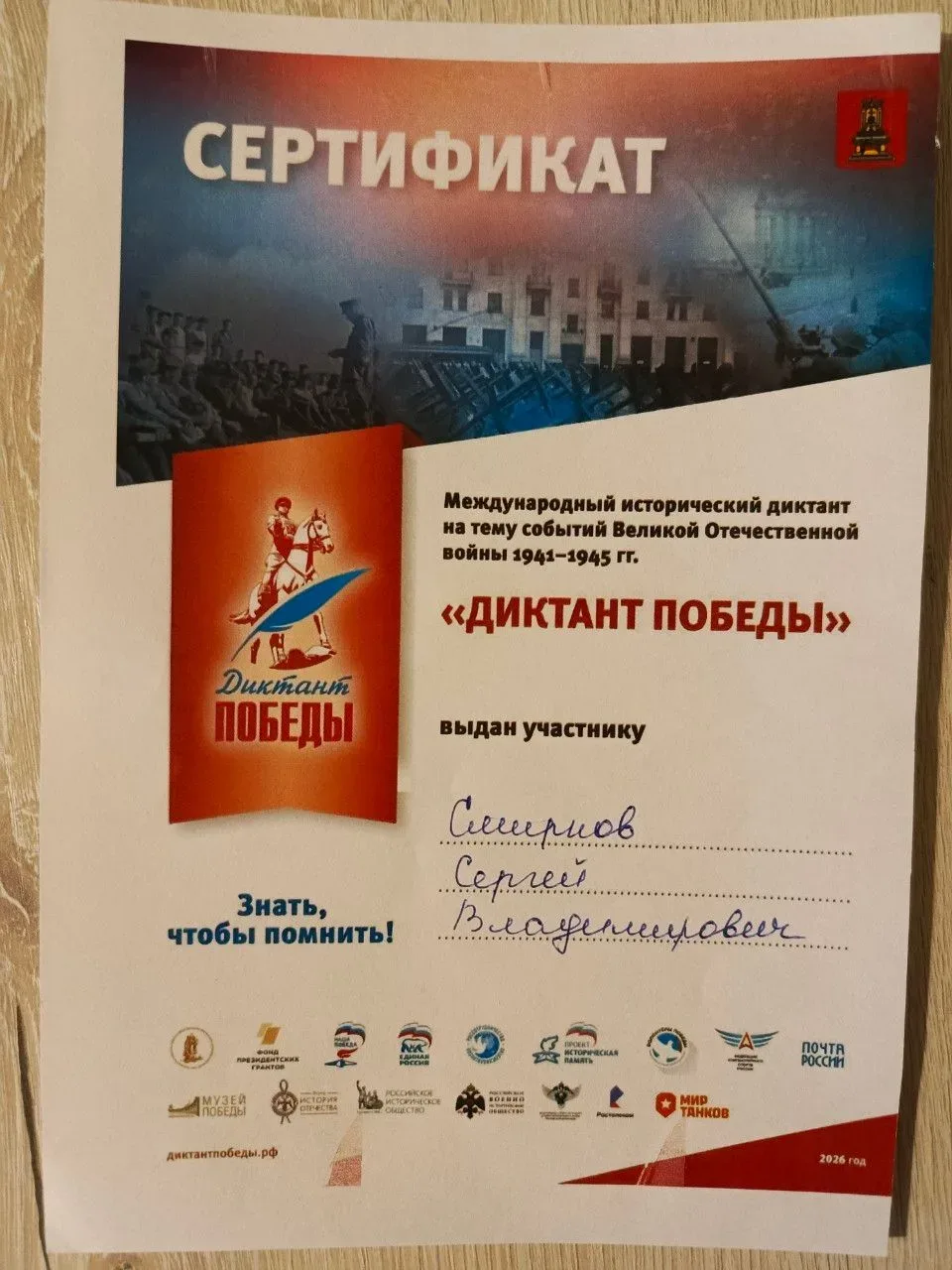 Каждый участник по окончании акции получил именной сертификат.