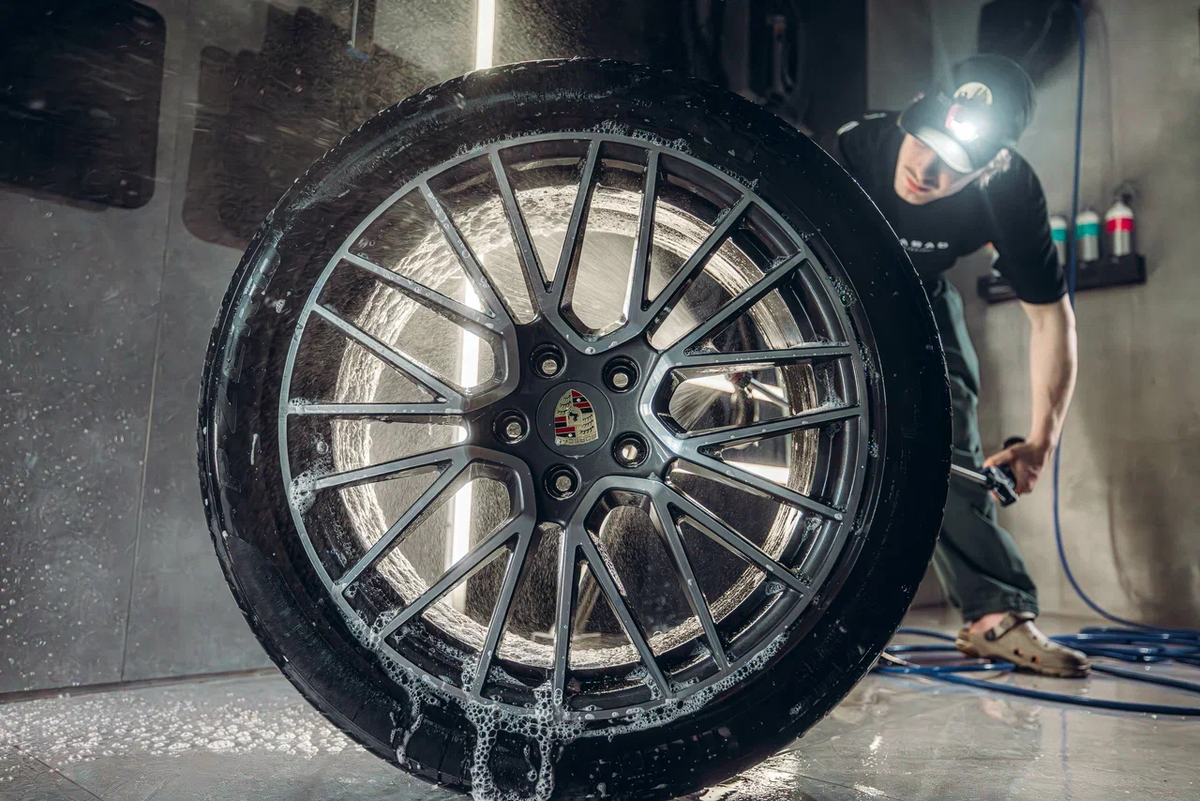 Первым шагом является снятие всех колес автомобиля, что позволяет тщательно обработать как наружную часть, так и внутренний обод. Это необходимо для удаления всей накопившейся грязи.